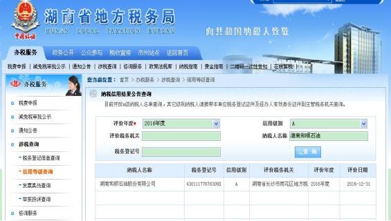為推進社會誠信體系建設,湖南省國稅局、地稅局按照國家稅務總局《納稅信用管理辦法(試行)》(總局公告2014第40號),開展了2016年度納稅信用聯(lián)合評價工作,我司再次獲得納稅信用“金字代言——A級納稅人”的稱號,我司已連續(xù)三年獲此榮譽,展現(xiàn)了誠信納稅的良好企業(yè)形象。